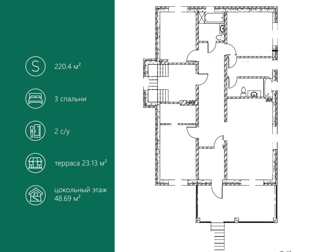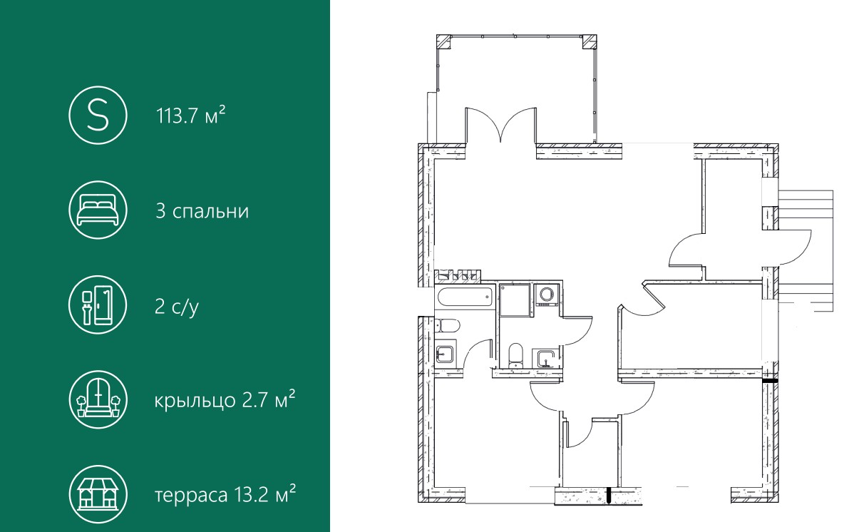 Площадь: 118,2 м² — 3 комнаты + кухня гостиная