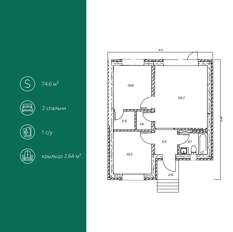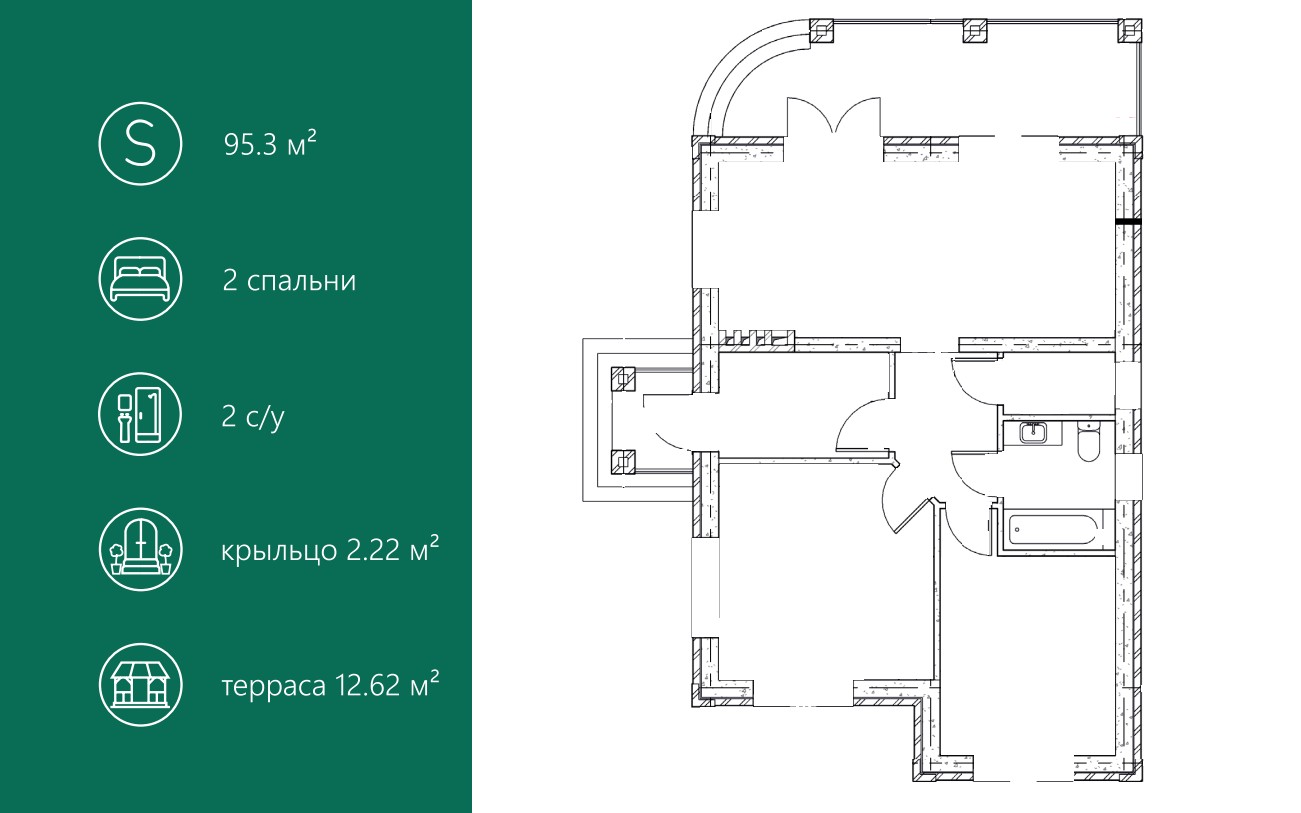 Площадь: 96,3 м² — 3 комнаты + кухня гостиная